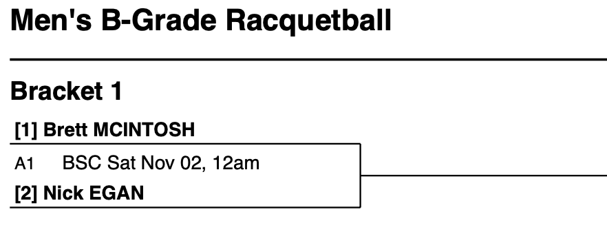 Bendigo Squash Club Championships - Semi's & Grand Finals are played on Saturday November 3. All other matches prior are arranged by the players.