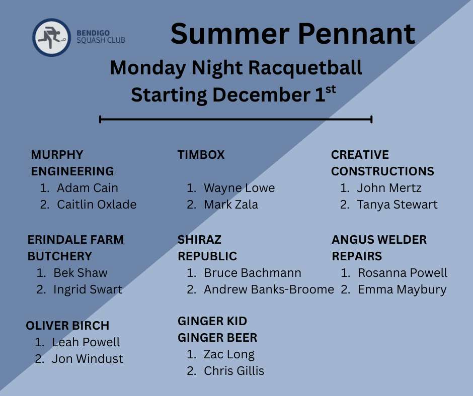 Our Summer Pennant commences on December 1st 2025. Check out your team.