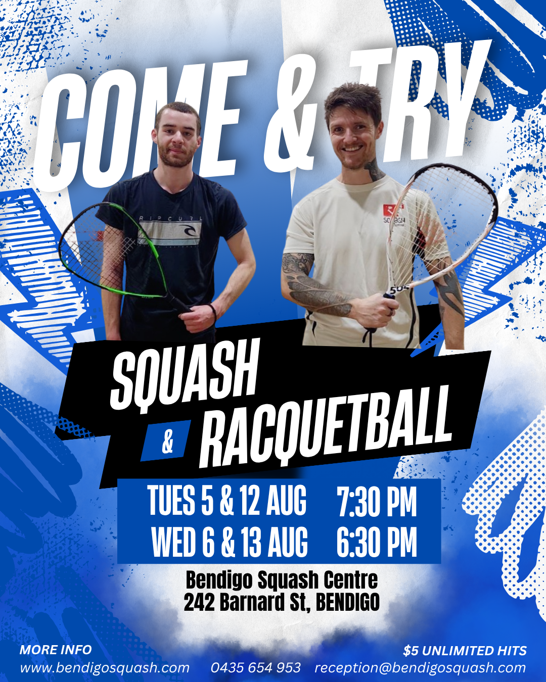 With the continued growth of Squash and Racquetball worldwide, we love to offer opportunities for everyone to have a hit and try these great sports at our dedicated facility in the heart of Bendigo.